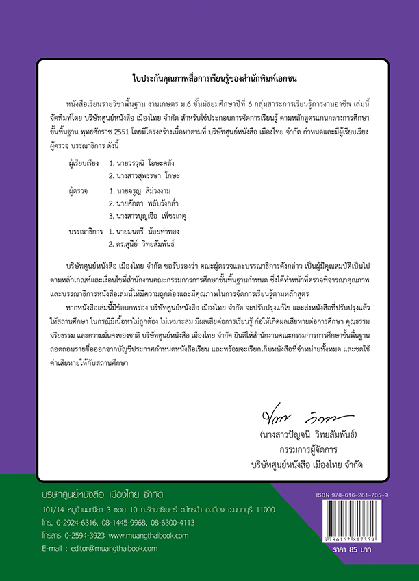 ชื่อวิชา : งานเกษตร ม.6รหัสวิชา : -ผู้เรียบเรียง : อ.วรวุฒิ โอษะคลัง และ อ.สุพรรษา โกษะปี พ.ศ. ที่เผยแพร่ : ปีการศึกษา 2563 รอบที่ 1ราคา : 85 บาทหมายเหตุ :